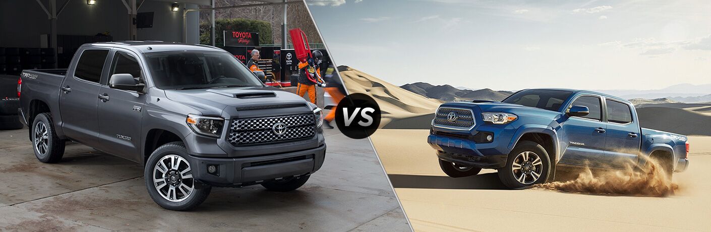 2018 Toyota Tacoma vs 2018 Toyota Tundra from blogmedia.dealerfire.com The most notable difference between the 2020 toyota tacoma and 2020 toyota tundra is size. Toyota tundra — price and engine capabilities. These 2019 toyota trucks were loaned to me by toyota. Tacoma mpg ratings, you'll see that the base tacoma trim level offers an a 18 mpg city and 22 mpg highway** fuel economy, while the starting tundra delivers a 13 mpg city and 17 mpg highway** rating. Regardless of why you want or need a truck. One difference between tacoma and tundra is the price points. The smaller tacoma is consistently more affordable when compared to a similar trim of the tundra, but some overlap exists between the two trucks. 2018 toyota tundra or tacoma?